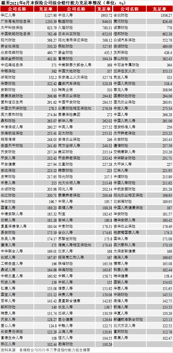 3、根據可查的161家保險公司披露的數據,截至2021年9月末,保險公司償付能力充足率高于200%的有89家,高于120%但低于200%的有66家,低于120%的有6家。需要注意的是,多家成立時間較短或業務規模較小的保險公司,盡管其綜合償付能力充足率很高,但可能因為不具備監管部門認可的信用風險管理能力,在投資非金融企業(公司)債券時仍對所投資債券有較高的外部信用評級要求;