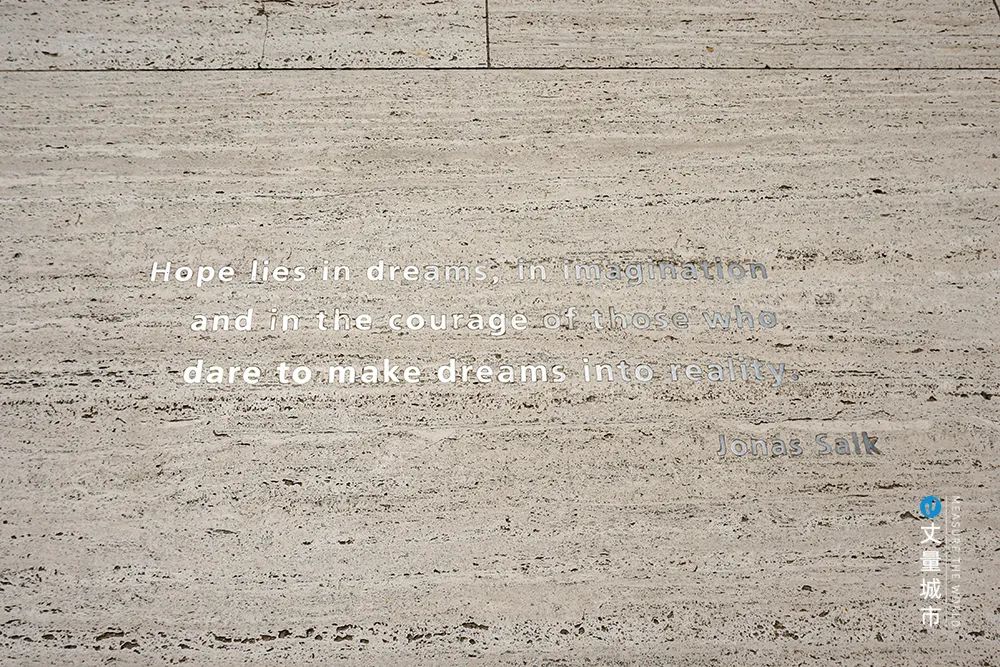 ▼ 薩爾克教授的名言被鐫刻在薩爾克生物研究中心廣場的地面上