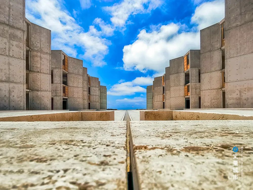 在修道院的教堂中,往往通過高聳的穹頂和炫目的玫瑰花窗彰顯出令人忘我的神圣感,由此讓修士們更加虔誠修行;在薩爾克生物研究所中庭——無疑也塑造出「精神原點」的最佳效果。超越時間的空間賦予每一個人駐足思索的力量……