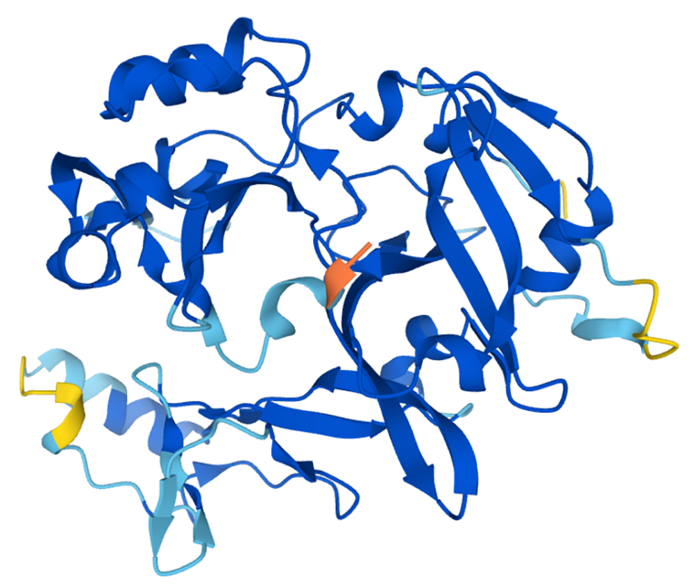 ▼ AlphaFold預測的蛋白質3D結構(來源:Wikipedia)