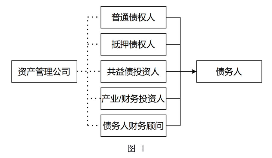對于資產管理公司在破產案件中的身份,我們初步區分為五種(如圖1),分別是:普通債權人、抵押債權人,共益債投資人、產業或財務投資人、債務人的財務顧問。接下來我們簡單逐一分析。