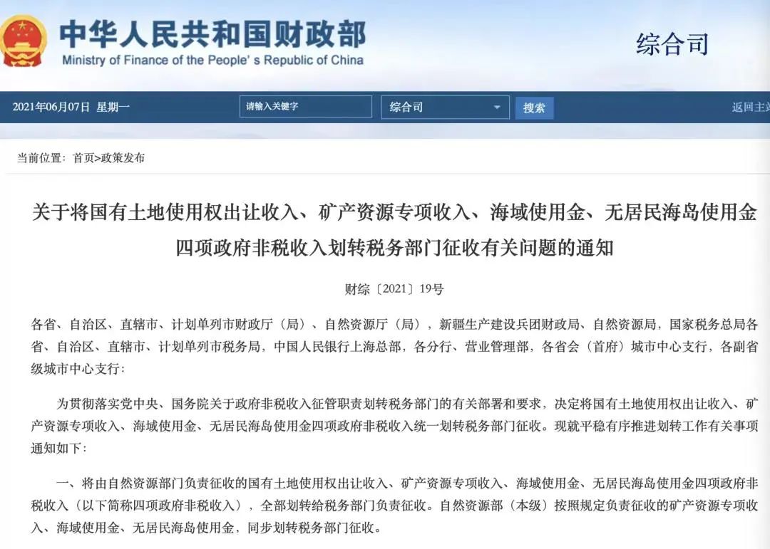 從原來的自然資源部收錢,從2022年開始,要由全國稅務局來收了。