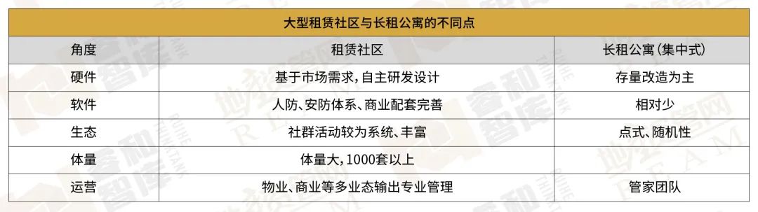 大型租賃社區(qū)與之前的長(zhǎng)租公寓存在多個(gè)方面的區(qū)別。
