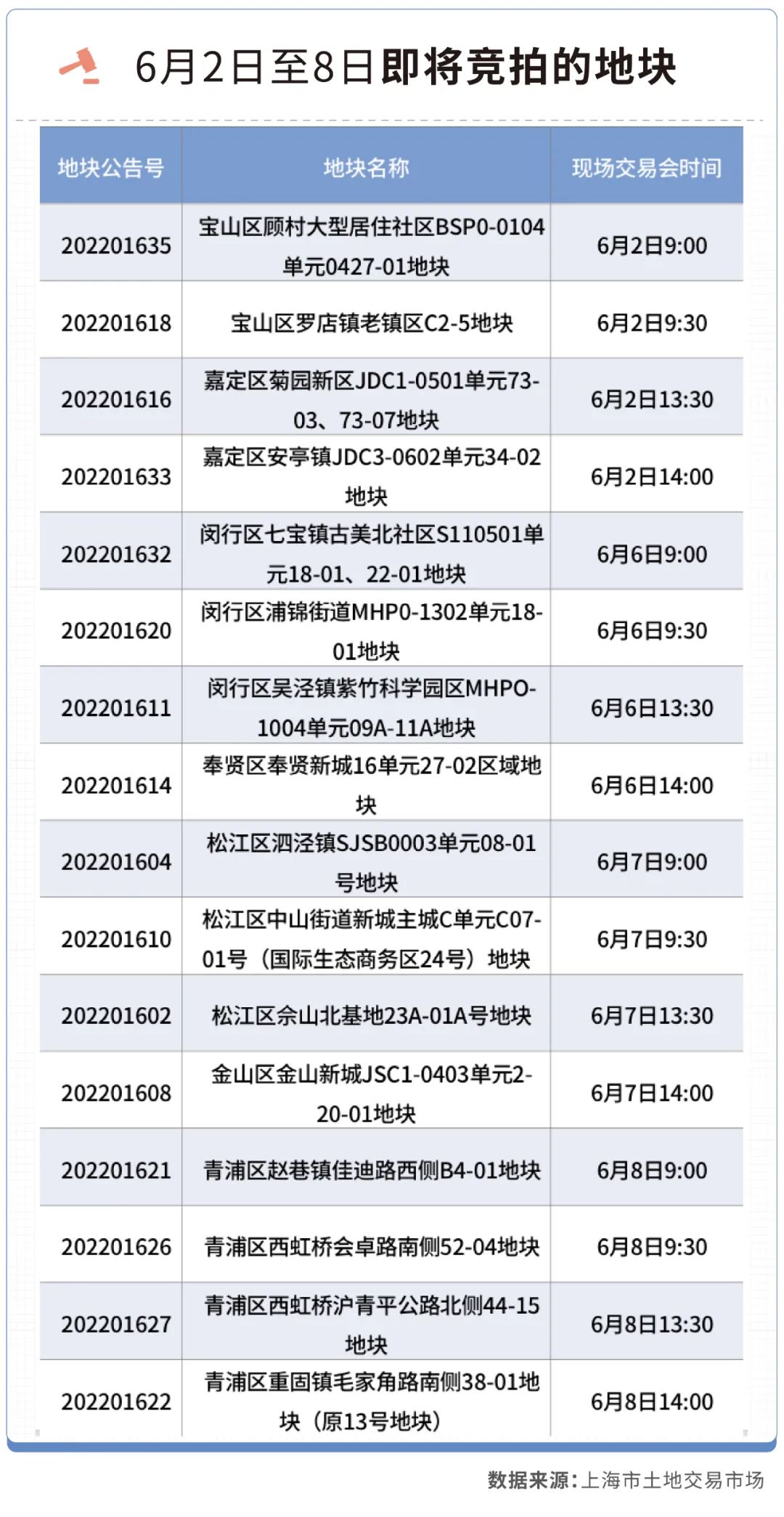 另有16幅地塊將于6月2日至6月8日陸續出讓。
