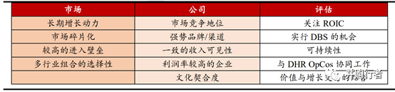 DBS與并購戰(zhàn)略:丹納赫制定并購戰(zhàn)略的過程實(shí)質(zhì)上是一個 DBS過程,是一個遞進(jìn)式的過程,包括市場、公司、評估三大模塊。在并購?fù)瓿珊螅ぜ{赫利用 DBS 進(jìn)行整合,完成從優(yōu)秀到卓越的提升。在選擇市場時,丹納赫偏愛市場碎片化、集中度比較低,競爭激烈程度不大,而且有未滿足客戶需求的市場機(jī)會,同時,競爭對手的發(fā)展也比較遲緩的領(lǐng)域,在篩選市場中的擬并購標(biāo)的時,通常傾向于選擇企業(yè)管理上存在改善空間或者發(fā)展遇到瓶頸,未來可以其通過 DBS 系統(tǒng)加以改善,以及借助丹納赫平臺的渠道和資金實(shí)力,使得收購的企業(yè)獲得更大的發(fā)展空間的企業(yè)。同時,被并購企業(yè)的管理層應(yīng)有豐富的運(yùn)營經(jīng)驗(yàn)和企業(yè)家精神,收購后丹納赫會盡可能保留原來的管理層和團(tuán)隊(duì),只在財務(wù)、管理、技術(shù)系統(tǒng)等層面上進(jìn)行融合。此外,選擇企業(yè)的時候,丹納赫還會考慮和現(xiàn)有平臺內(nèi)主要公司業(yè)務(wù)互補(bǔ),有協(xié)同效應(yīng),以及一定的行業(yè)周期互補(bǔ)。