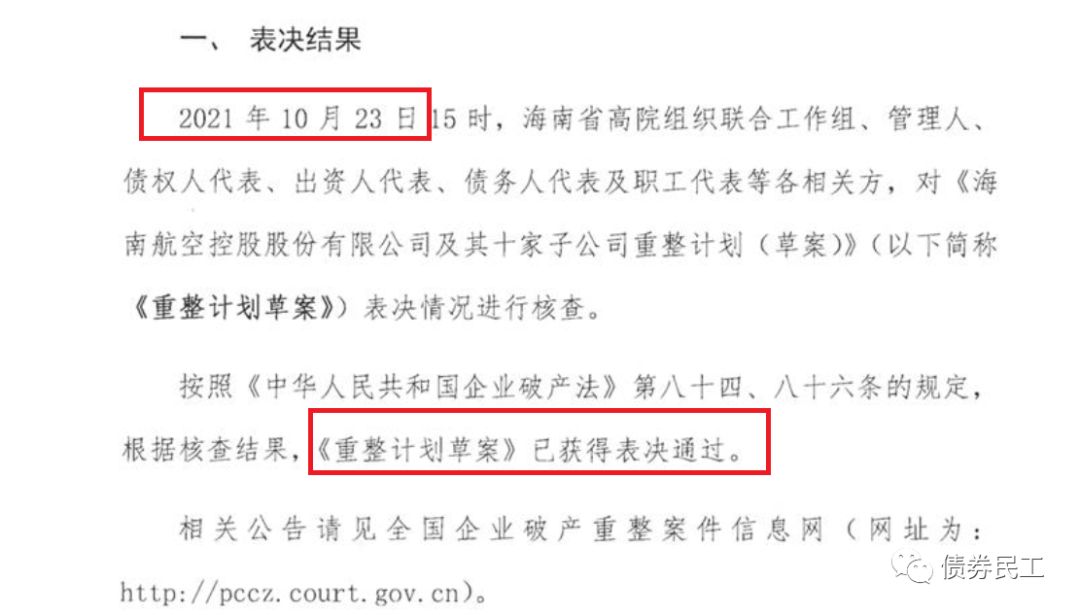1、2021年10月25日,海南航空控股股份有限公司公告,2021年10月23日,聯合工作組、管理人、債權人代表、出資人代表、債務人代表以及職工代表各方表決通過《重整計劃草案》。海南航空控股股份有限公司歷史最高主體信用等級為AAA,目前最新主體信用等級為C,已經實質違約債券只數為10只,已經實質違約債券金額為131.90億元。