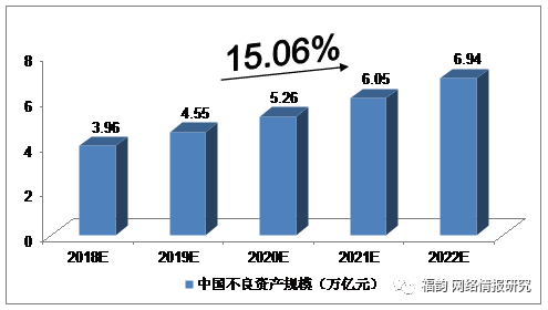 當前,我國不良資產市場規(guī)模繼續(xù)呈擴大之勢,預計2018-2022年不良資產規(guī)模均復合增長率約為15.06%,2022年將達到6.94萬億元。所以在目前以及今后的較長一段發(fā)展時間中,不良資產處置均會是金融領域重點關注和討論的話題。