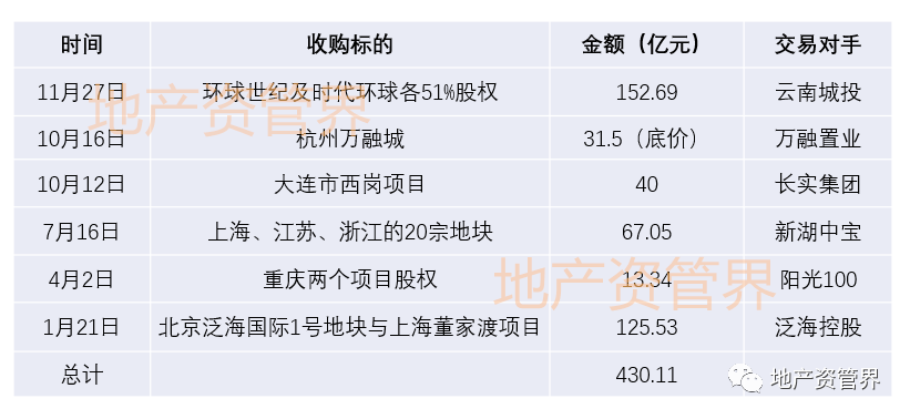 隨后交易對(duì)手不斷變化,從深陷財(cái)務(wù)危機(jī)的陽(yáng)光100到新湖中寶,再到近兩個(gè)月的長(zhǎng)實(shí)、萬(wàn)融和云南城投,粗略算下來,孫宏斌今年又掏出了430億以上來“掃貨”。