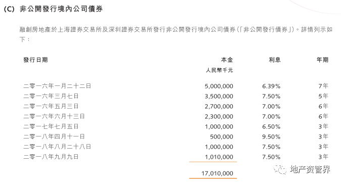 第二,是公司債券和非公開發(fā)行境內(nèi)公司債券。融創(chuàng)于上海證券交易所分別發(fā)行公司債券和非公開發(fā)行境內(nèi)公司債券,累計(jì)13筆資金,共計(jì)248.5億元人民幣。
