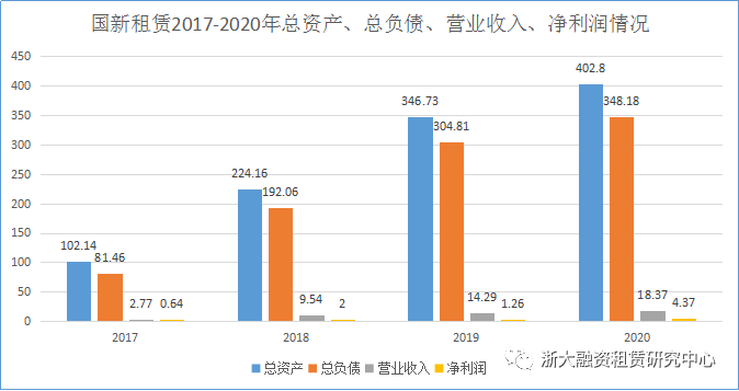 國新租賃2016年-2020年資產負債及凈利情況(單位:億)