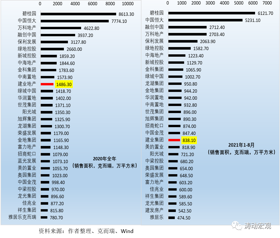 但由于不同地區(qū)的地價與房價差異明顯,因此這種排名似乎并不公允。若以銷售面積來看,則發(fā)現(xiàn)建業(yè)集團則分別位居中國地產(chǎn)企業(yè)第11位(2020年)和第19位(2021年1-8月)。因此,建業(yè)集團的市場地位雖然不足以和恒大相提并論,但終歸也算是位于市場前列。