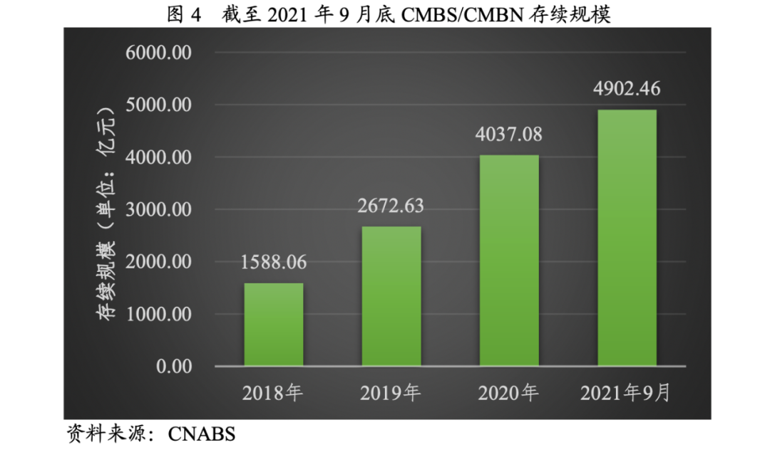 CMBS以寫(xiě)字樓、酒店、商場(chǎng)、公寓、物流地產(chǎn)等商業(yè)地產(chǎn)作為底層標(biāo)的物業(yè),以標(biāo)的物業(yè)抵押貸款債權(quán)為基礎(chǔ)資產(chǎn)發(fā)行資產(chǎn)支持證券,其本質(zhì)可以看做是房企的抵押貸款。近三年,房企CMBS存續(xù)規(guī)模呈逐年遞增態(tài)勢(shì),截至2021年9月底,房企CMBS存續(xù)規(guī)模4902.46億元。CMBS由于其債權(quán)屬性,且所有權(quán)及風(fēng)險(xiǎn)未發(fā)生轉(zhuǎn)移,因此無(wú)法出表,CMBS產(chǎn)品期限較長(zhǎng),且為有息負(fù)債,故會(huì)計(jì)記賬時(shí)借銀行存款,貸長(zhǎng)期借款、長(zhǎng)期應(yīng)付款、其他非流動(dòng)負(fù)債等科目,由于涉及長(zhǎng)期有息債務(wù)科目調(diào)整,故即三道紅線中可能導(dǎo)致剔除預(yù)收后的資產(chǎn)負(fù)債率上升,凈負(fù)債率不變,現(xiàn)金短期債務(wù)比上升。