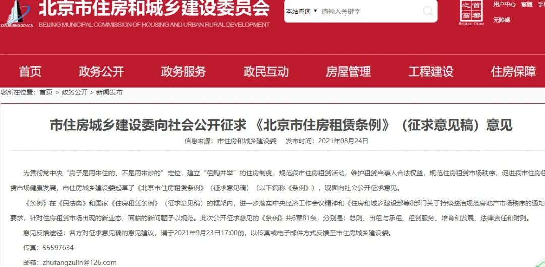 2020年9月,住建部發布《住房租賃條例(征求意見稿)》;