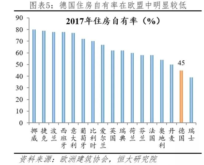 2017年,德國住房自有率45%,55%的人口都是租房居住,遠高于其他歐盟國家的30%左右的平均水平。