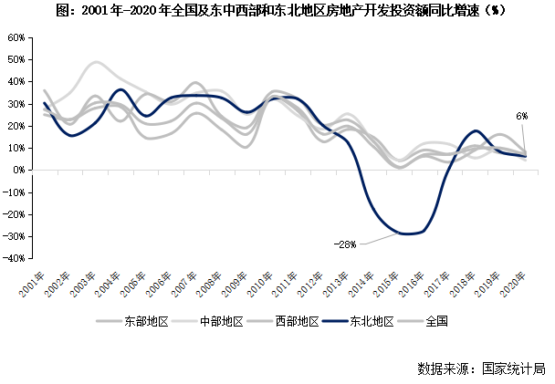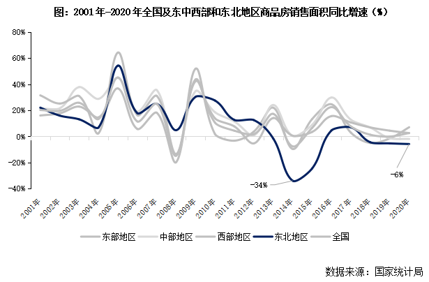 (一)東北樓市行情相對獨立,房地產開發、銷售落后于東、中、西部(本節有刪減)