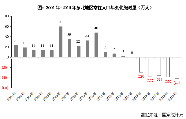 隨著經濟增長動力愈發落后于中東西部地區,勞動人口逐漸由資源日漸枯竭的東北地區向經濟富足地區轉移,人口流失現象逐年嚴重。