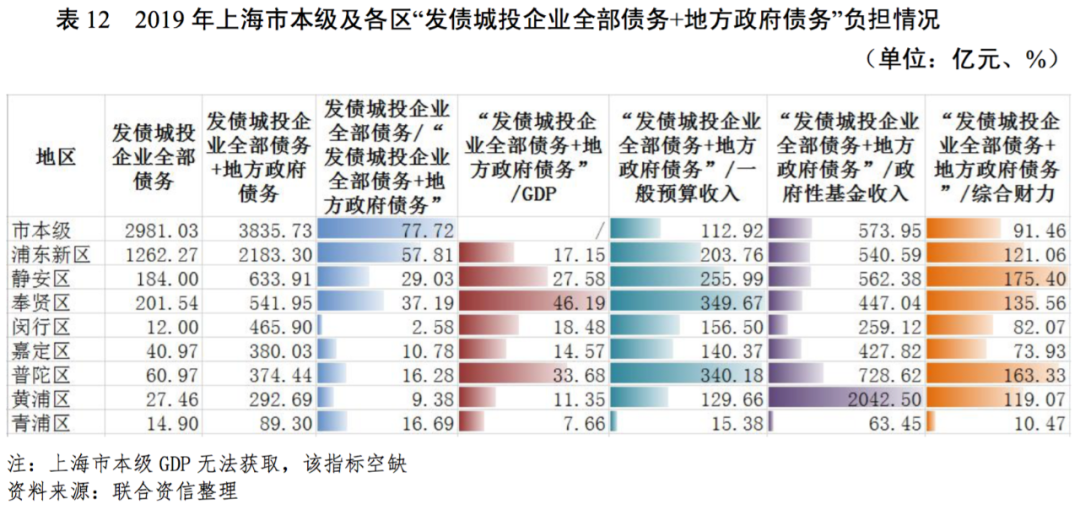 3.上海市本級及各區財政收入對發債城投企業債務的支持保障能力