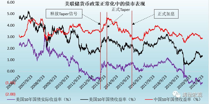 1、在美聯儲向市場釋放Taper信號和正式啟動Taper過程中,美國10年期國債收益率趨于快于上行。