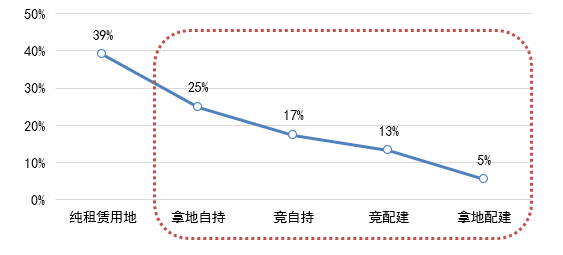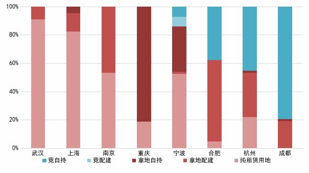 2、民企租賃用地主要來自競(jìng)自持,國(guó)/央企競(jìng)配建比例大(略)