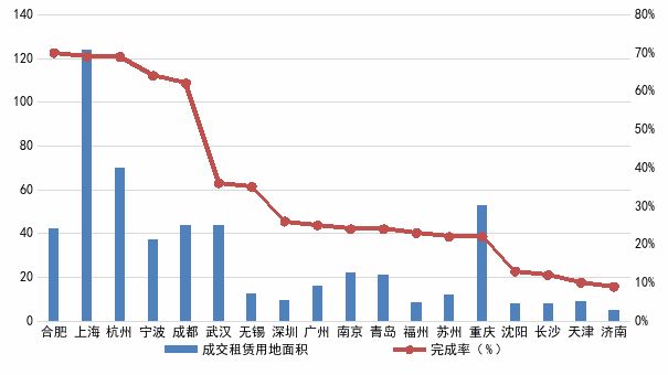 1、租賃用地僅占22城土地出讓面積5%,長(zhǎng)三角完成率最高