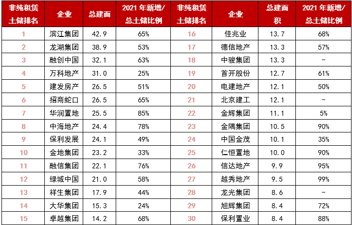 - 強(qiáng)納儲(chǔ)意愿下,30強(qiáng)房企獲得更多租賃用地