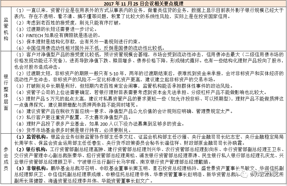 1、20171125:監管部門與業界召開專題會議,征求業界意見