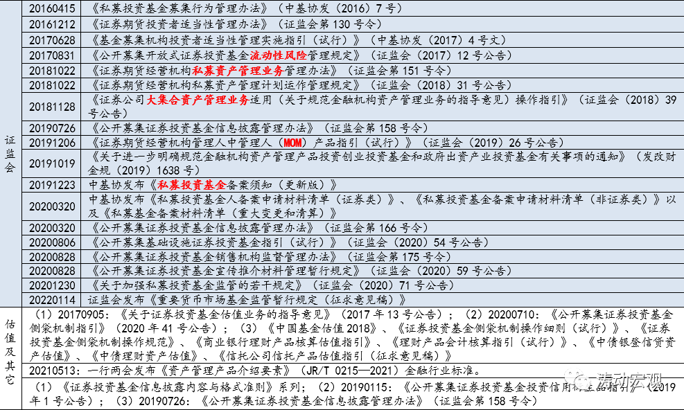 (2)信托計劃細則(正式稿)、《保險資產管理公司管理暫行規定》(修訂)、期貨資管細則以及《私募投資基金監督管理暫行辦法》等等。