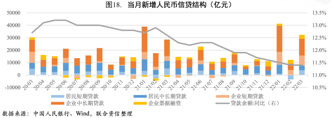 2022年一季度,積極的財政政策和穩健的貨幣政策靠前發力,推動社融總量大幅擴張,但信貸結構欠佳反映出實體經濟融資需求仍較弱。央行靈活運用多種貨幣政策工具,加大對實體經濟的支持力度,市場流動性總體上合理充裕,企業融資成本穩中有降。