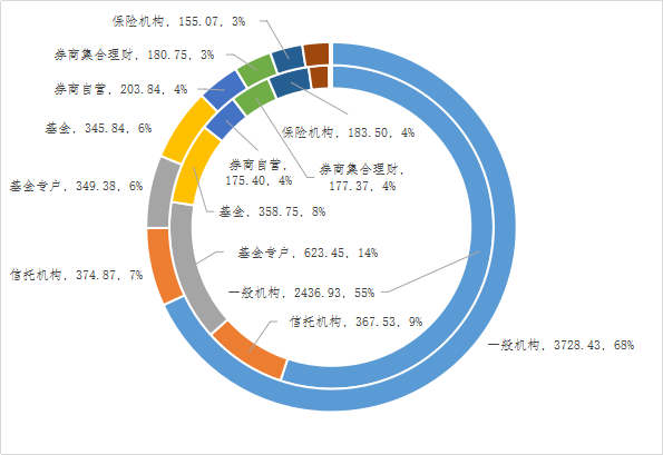 在商業(yè)銀行群體中,全國(guó)性商業(yè)銀行和股份制商業(yè)銀行的持倉(cāng)占據(jù)了絕對(duì)的份額,高達(dá)79.37%。此外,城商、農(nóng)商和外資行分別持倉(cāng)占比9.33%、7.74%、3.47%。