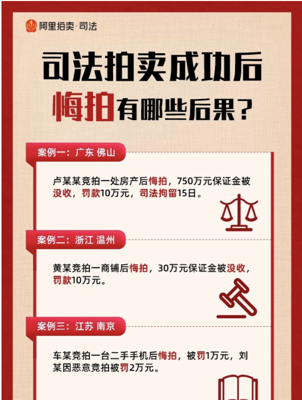 雷達財經注意到,此前曾有人為惡意出價并悔拍的行為遭處罰。此外,阿里拍賣也曾提示過悔拍風險。