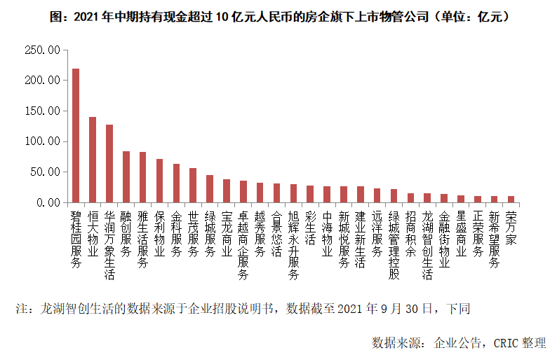 華潤萬象生活在此時開始大舉并購,究其原因,一方面是因為企業擁有著充足的現金儲備。自從在2020年底完成了IPO成功募集120億港元之后,華潤萬象生活并沒有進行過大規模的投資,因此截至2021年中仍擁有著近128億元的持有現金,在各家已上市的房企旗下物管公司中排名第三。
