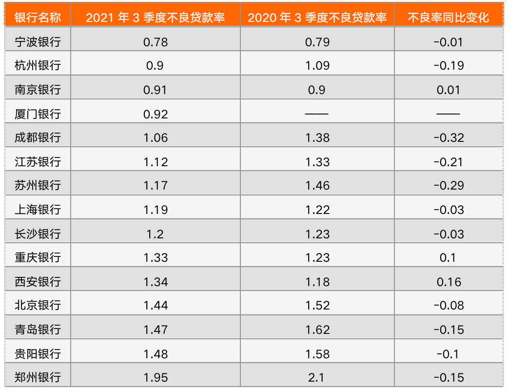 尤其是在資產質量方面,2021年前三季度寧波銀行的不良率僅為0.78%,較上年同期的0.79%,進一步下降了0.01個百分點。由此可見,該行將風險防控作為經營首位,始終遵循著“控制風險就是減少成本”的風控理念,嚴格把控信貸風險發生的每個環節。零壹智庫對比發現,寧波銀行憑借著0.78%的超低不良率,不僅在15家A股上市城商行之中排名第一,甚至在38家A股上市銀行之中也排在首位,超越了國有大行與全國性股份制銀行,足以說明其資產質量處于行業領先水平。