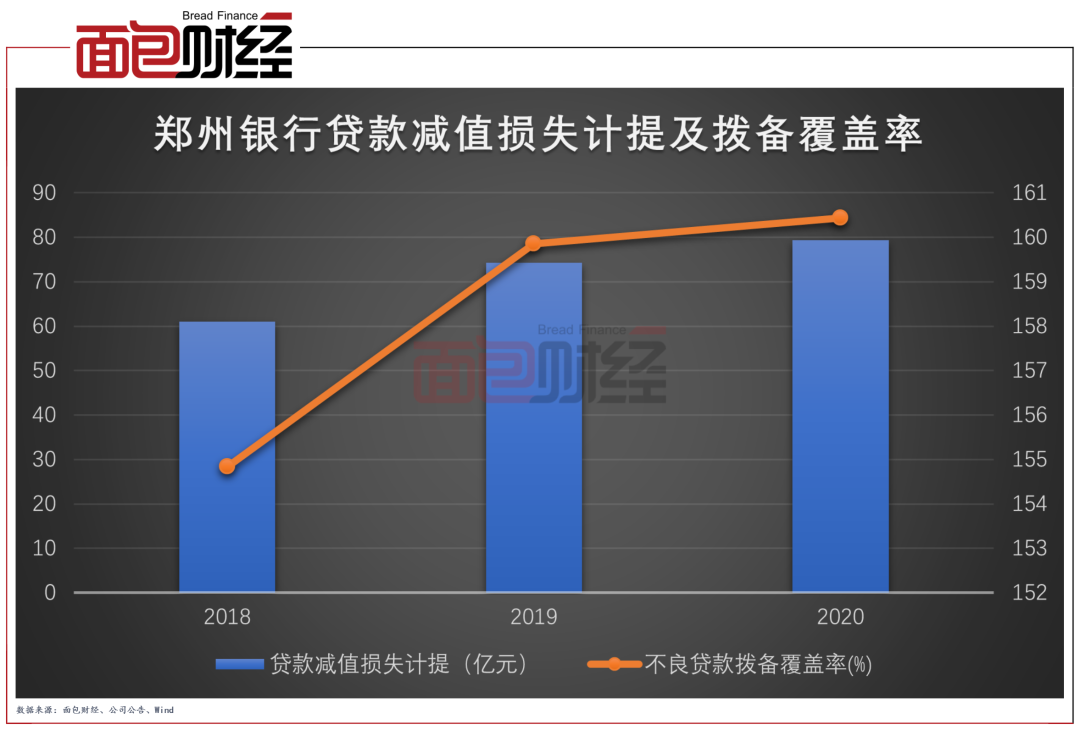 除了不良貸款率,2020年鄭州銀行加大了貸款減值損失計(jì)提力度,該行撥備覆蓋率提升至160%以上。