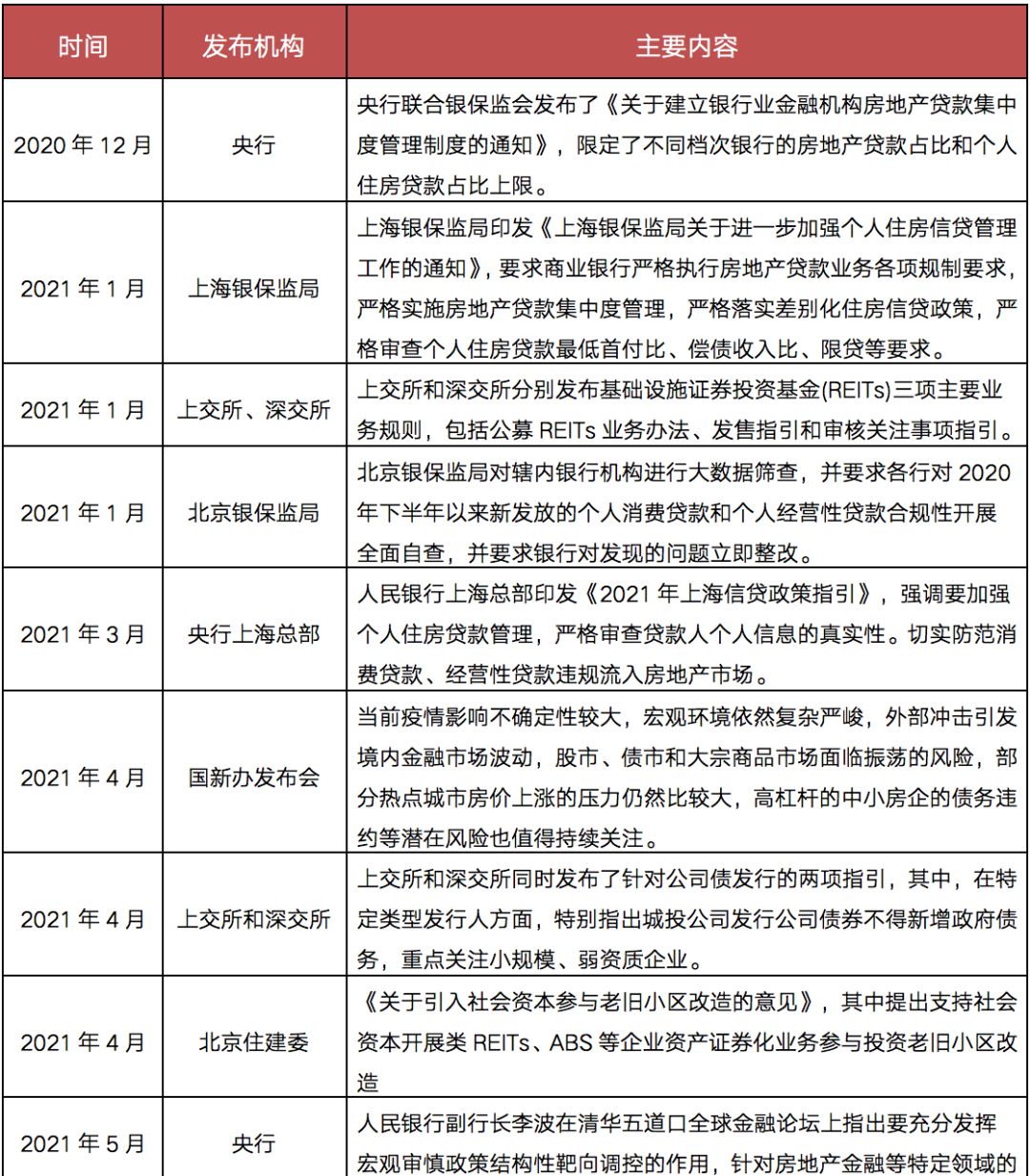 三條紅線(xiàn)和貸款集中度政策出臺(tái)后,房企融資供需兩端持續(xù)收緊。2021年上半年房地產(chǎn)融資合規(guī)審查方面的政策監(jiān)管也在持續(xù)加強(qiáng),上海、北京、深圳等地嚴(yán)查經(jīng)營(yíng)貸款違規(guī)入市,此外,為防范房企債券違約金融風(fēng)險(xiǎn),嚴(yán)控城投公司、弱資質(zhì)企業(yè)發(fā)行公司債。