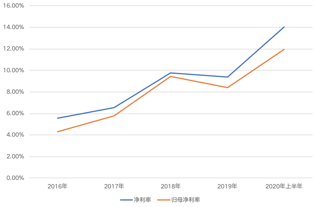 圖:金科股份2016-2020上半年凈利率及歸母凈利率