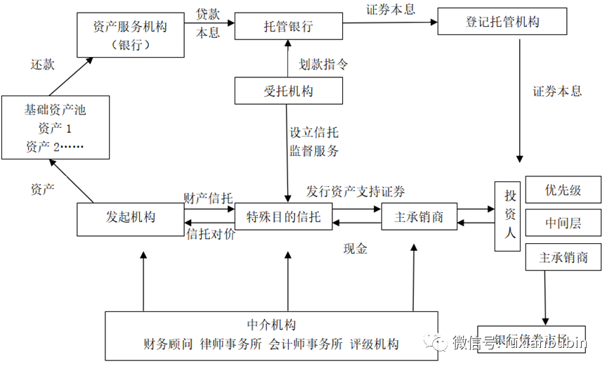 不良資產(chǎn)證券化產(chǎn)品是將不良債權(quán)資產(chǎn)進(jìn)行包裝組合,并以此為基礎(chǔ)發(fā)行可交易證券的一種融資形式。不良資產(chǎn)證券化系由不良債權(quán)持有者將債權(quán)轉(zhuǎn)讓給SPV/SPT,由其將資產(chǎn)匯集成資產(chǎn)池,再以該資產(chǎn)池所產(chǎn)生的現(xiàn)金流為支撐在金融市場(chǎng)上發(fā)行有價(jià)證券進(jìn)行融資,并以該資產(chǎn)池產(chǎn)生的現(xiàn)金流來(lái)清償所發(fā)行的有價(jià)證券。其業(yè)務(wù)模式基本如下圖: