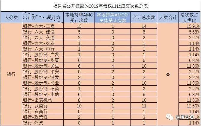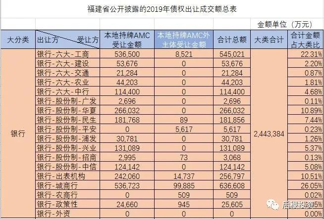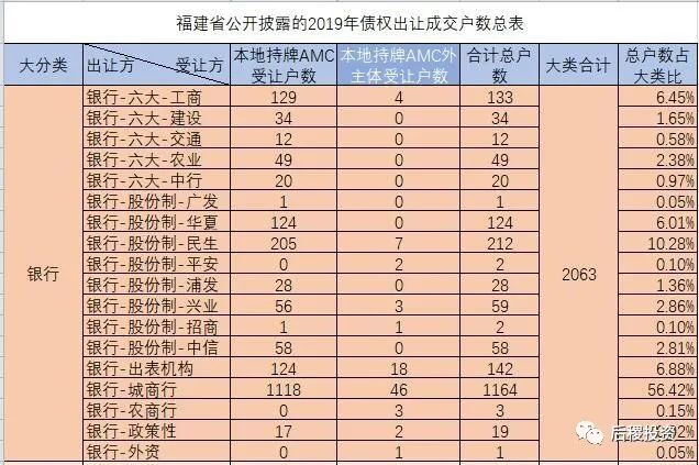 a、單從金額上看,2019年福建省一級(jí)市場(chǎng)銀行出讓債權(quán)總金額約244億元左右,其他機(jī)構(gòu)約25億元左右,合計(jì)269億元左右,由于有關(guān)信達(dá)的金額數(shù)據(jù)缺失,故此金額應(yīng)當(dāng)更高(信達(dá)的實(shí)際受讓金額按與其他AMC的戶數(shù)比例推算,應(yīng)當(dāng)在25-30億之間)。對(duì)比2018年的380億元左右,規(guī)模大幅下降。