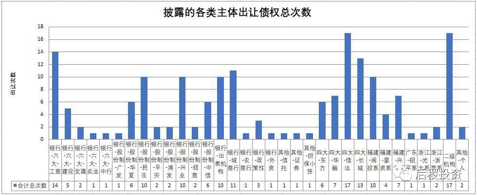 a、從銀行出讓規(guī)模上看,除傳統(tǒng)規(guī)模較大的工行外,城商行是出讓市場(chǎng)的主角,華夏銀行和民生銀行的處理力度相對(duì)也較大。
