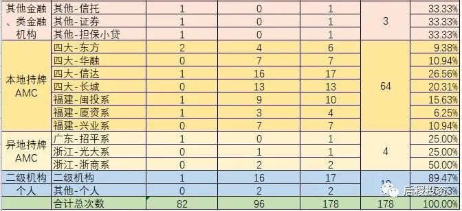c、二級(jí)市場(chǎng)中,本地持牌AMC總出讓額約192億元,相較去年240億元左右有所下降,但如加上信達(dá)未透露金額的部分,總規(guī)模相差應(yīng)該不大。但具體到各家單位,則變化巨大。2018年出讓規(guī)模均在30億以上的福建地方AMC,今年的出讓規(guī)模大幅下降,其中廈門(mén)資管從52億降到了7.8億,閩投資管從32億降到了10.9億,興業(yè)從35億左右降到了22億左右。四大全國(guó)AMC中,東方的出讓規(guī)模大幅上升,從19億元左右上升到了77億左右。