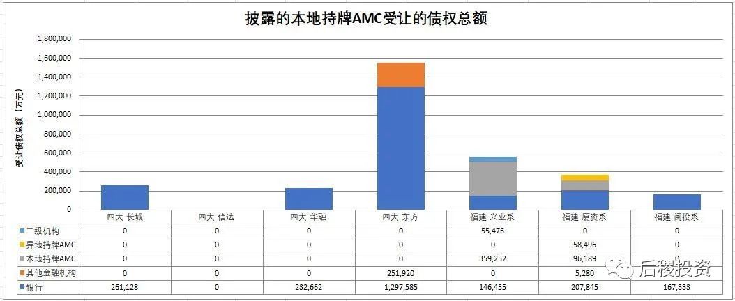 東方的受讓?xiě)魯?shù)特別高,是因?yàn)闁|方有三筆從福建海峽銀行受讓的債權(quán)資產(chǎn)包,戶數(shù)特別多。但即使拋開(kāi)這個(gè)因素,東方2019年在福建的受讓規(guī)模在持牌AMC中仍處在首位。