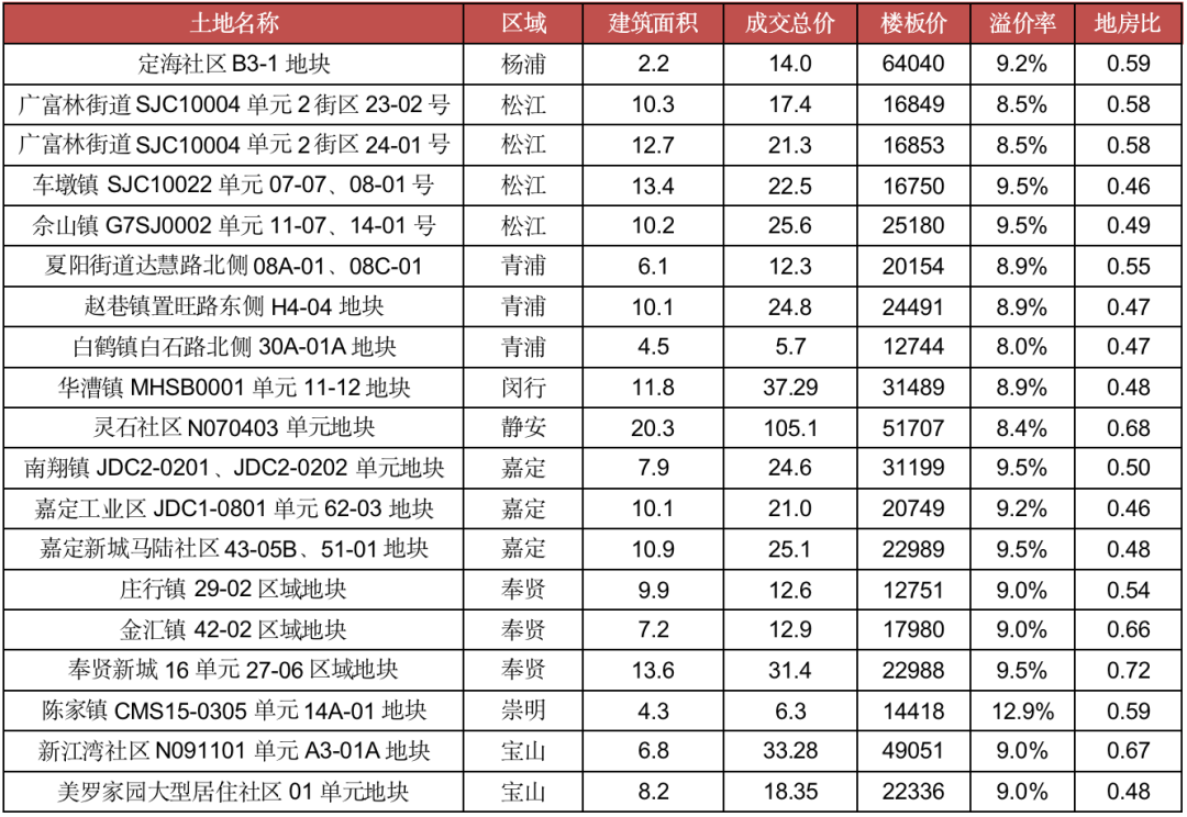 表:上海首輪集中供地中出讓要求較為嚴格的土地成交情況