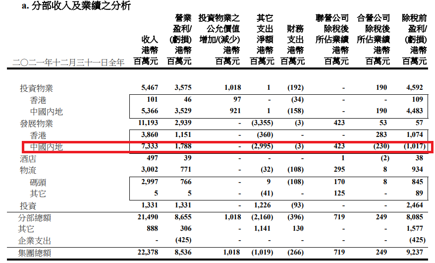 a.為若干由子公司持有位于中國內地及香港的發展物業作出減值撥備港幣三十三億三千六百萬元(二○二○年:為一個香港發展物業作出減值撥備港幣二十八億六千四百萬元)。