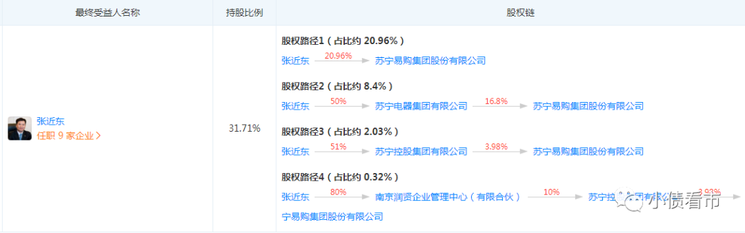 從股權(quán)結(jié)構(gòu)上看,張近東直接持有蘇寧易購(gòu)20.96%股份,他還通過蘇寧集團(tuán)、蘇寧控股等路徑對(duì)公司間接持股,合計(jì)持有31.71%股份,為公司控股股東和實(shí)際控制人。