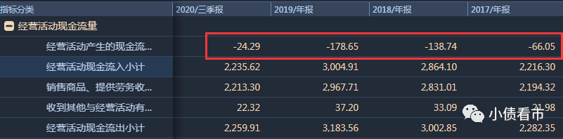 除了經(jīng)營(yíng)業(yè)績(jī)欠佳,蘇寧易購(gòu)的經(jīng)營(yíng)獲現(xiàn)能力也在持續(xù)惡化。