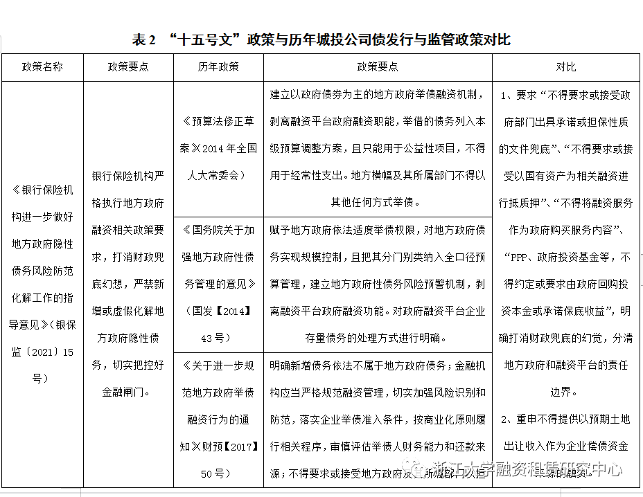 “十五號文”從職責劃分、風險管理、系統管控、資金來源等多個方面對銀行保險等金融機構提出要求,地方政府融資平臺違規融資難度進一步加大。