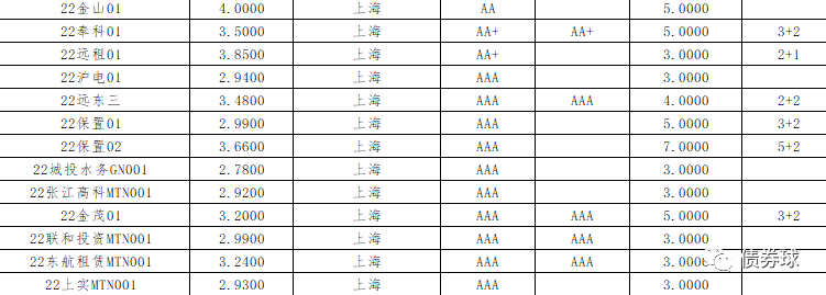 上海,金融資源特別集中、經濟特別發達的地方,即便票面利率數值上最高22金山01的4%,人家也是AA,5年期,總體利率水平可以和大北京一較高下。