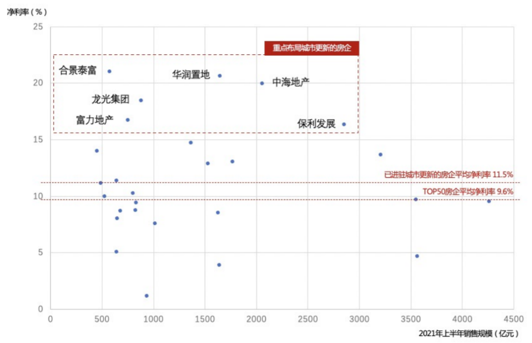 圖:TOP50已進駐城市更新的房企凈利率情況