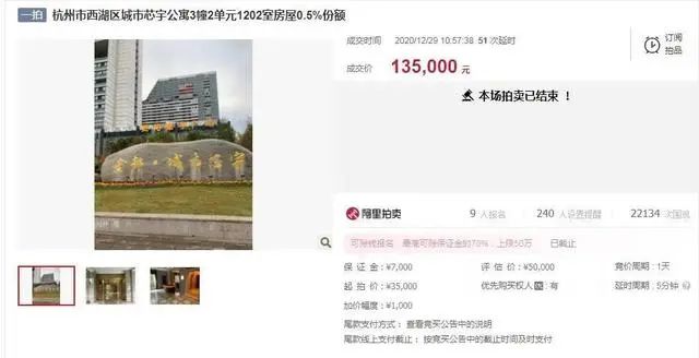 以上這些房產,有在變賣階段的,也有剛剛進入一拍即將被拍賣的,但它們與其他普通法拍房有個非常明顯的區別,那就是它們都不是擁有完成產權份額的法拍房。本期,我們就以之前的杭州市西湖0.5%份額房產為例來給大家講講: