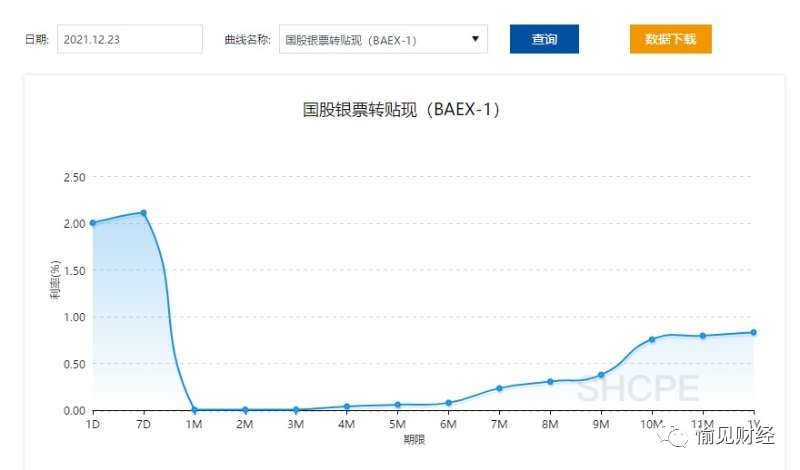 開篇先來貼一張圖,這是12月23日的各期限國(guó)股銀票轉(zhuǎn)貼現(xiàn)利率。如大家直觀所見,1月期、2月期、3月期利率已經(jīng)跌出了地板價(jià)。