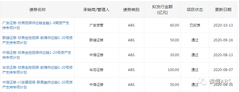 讀懂ABS注意到,目前滬深交易所獲批的“1+N+N”擔保模式ABS有5單,在受理的至少有3單,規模超200億!分別如下: